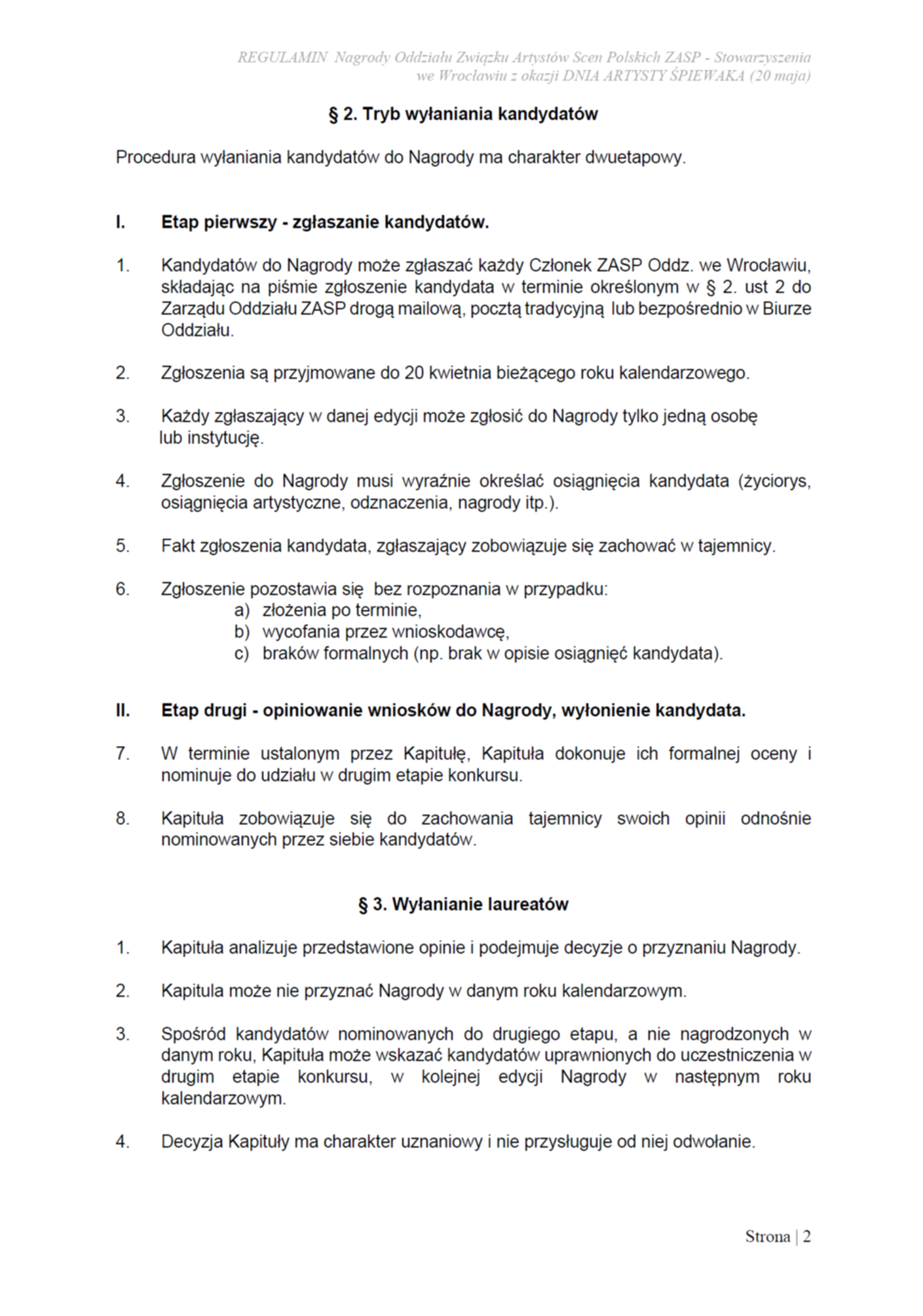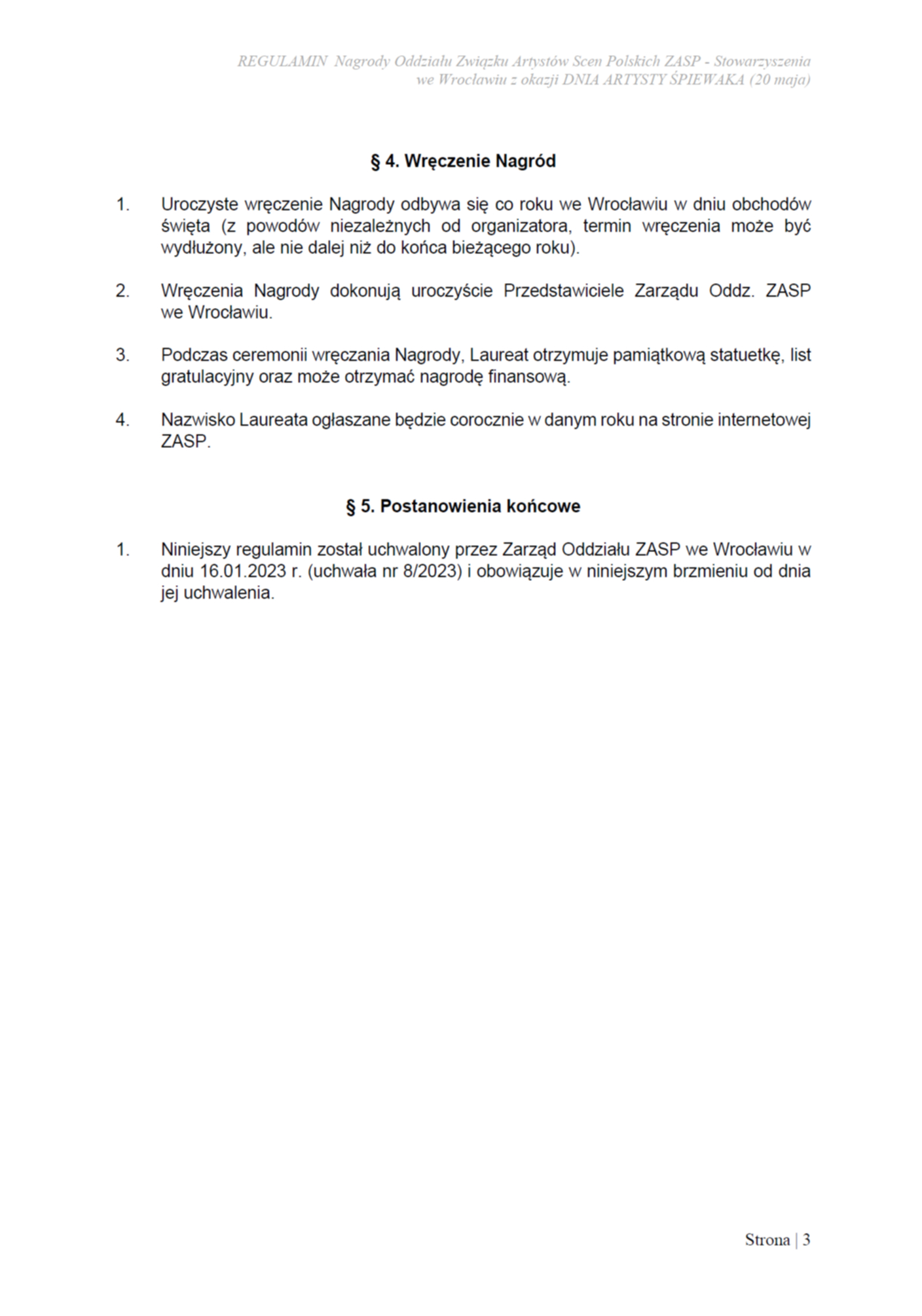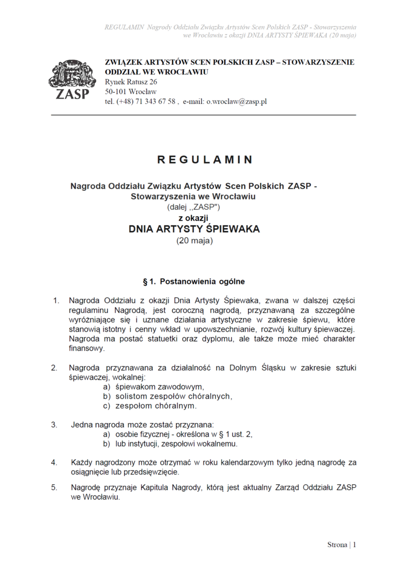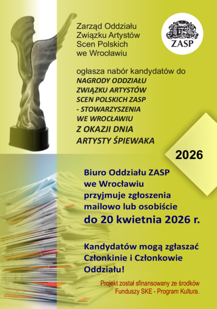 DO 20.04.2026 nabór kandydatów do NAGRODY ODDZIAŁU ZASP WE WROCŁAWIU Z OKAZJI DNIA ARTYSTY ŚPIEWAKA