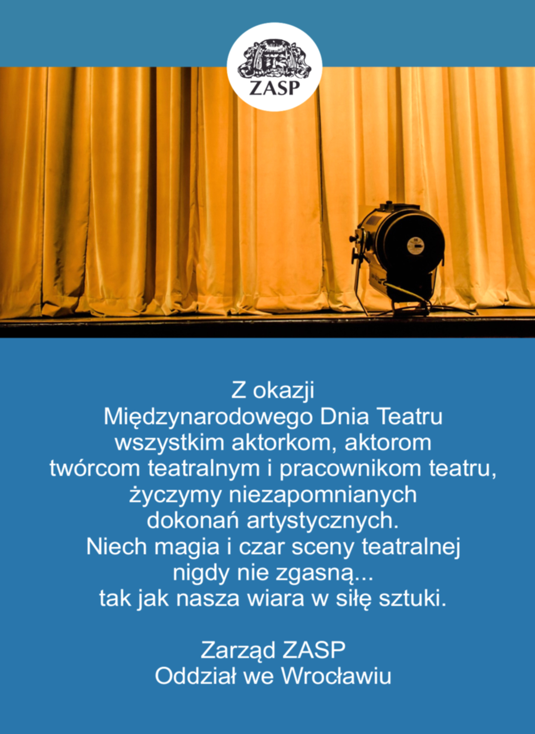 Życzenia z okazji Międzynarodowego Dnia Teatru – 2026